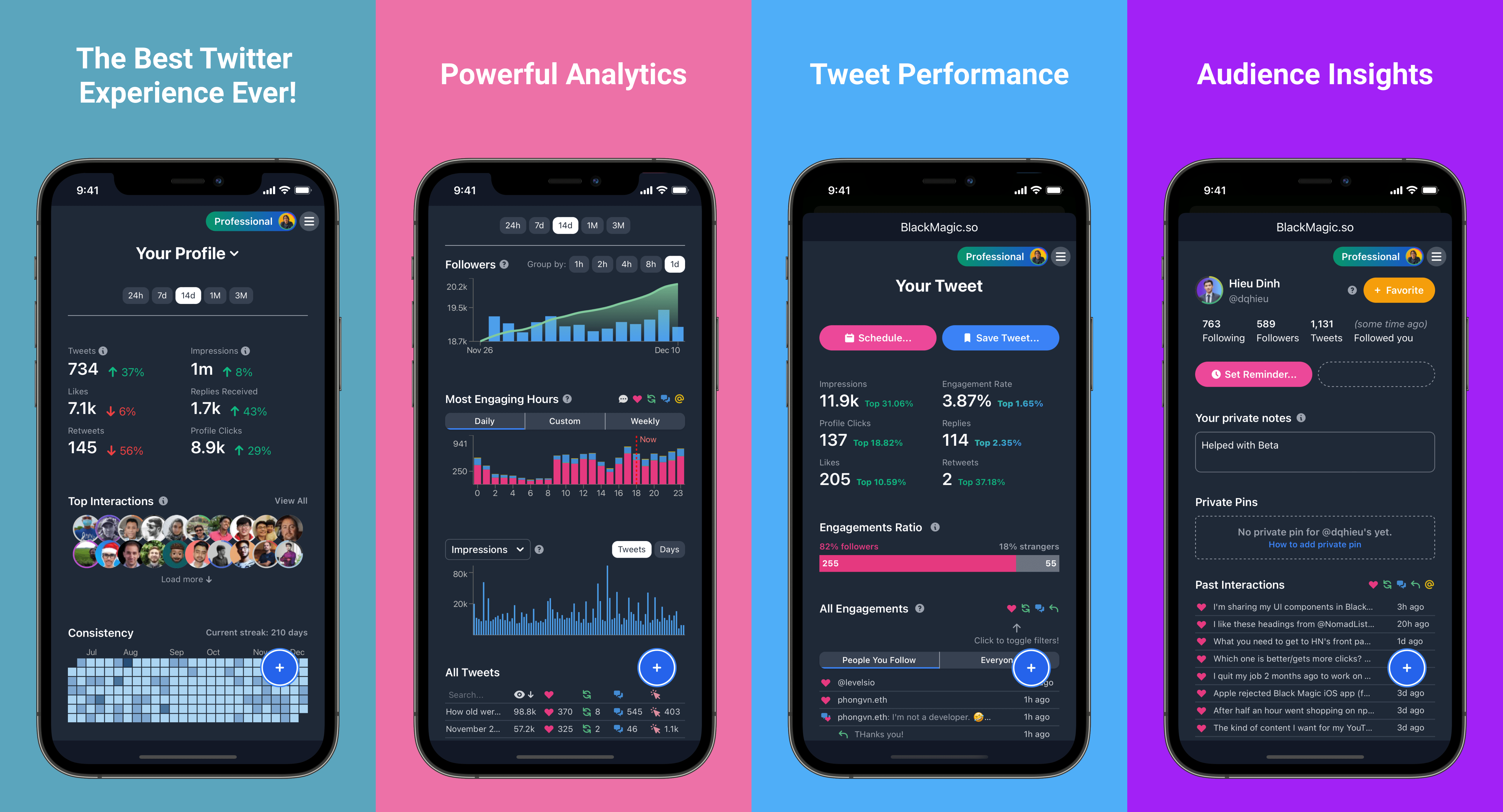 Black magic is amazing – a must have product if you're serious about growing your Twitter audience. I can see how my tweets perform and know immediately which one deliver the best result!